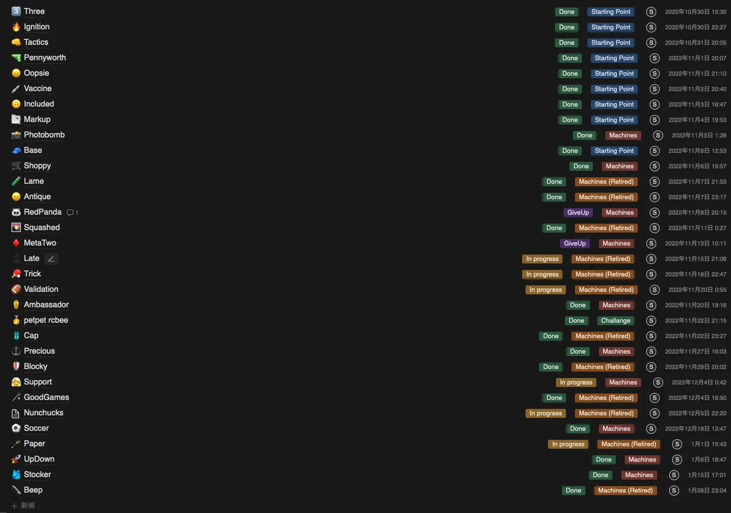 ↑とやってることはほぼ同じ。基本はEasyなMachineが新しく出るのを待ちながら、Retiredに取り組んでいた。